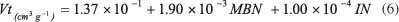 由于微孔由于其尺寸而優(yōu)先被碘分子存取,所以碘值也通過最小二乘回歸與微孔體積直接相關(guān)。然而,所獲得的誤差要高于考慮亞甲藍(lán)和碘值時(shí)的誤差。這表明亞甲藍(lán)在微孔體積預(yù)測(cè)中有一定貢獻(xiàn),可能是由于在較大微孔中的吸附。