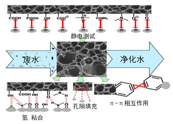 圖2:污染物與活性炭相互作用的推測機制。