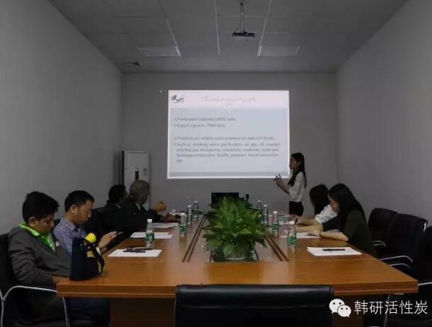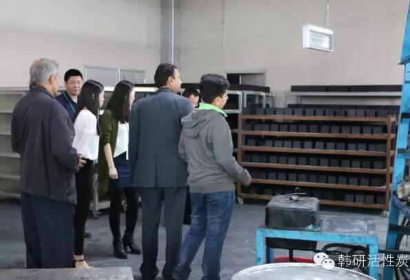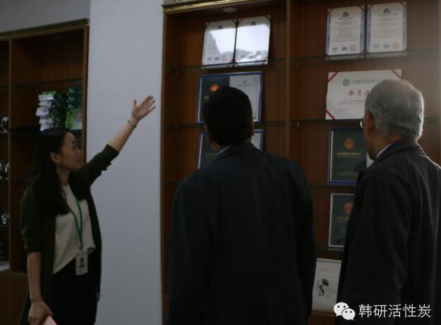 我司外貿總監(jiān)Jane 帶領來訪的客戶們參觀了我司的證書展示區(qū)(各種認證及專利)、產品展示區(qū)、研發(fā)實驗室、蜂窩活性炭生產車間、椰殼活性炭生產車間等等,讓他們更加真真切切地感受到韓研強大的技術研發(fā)及生產能力。