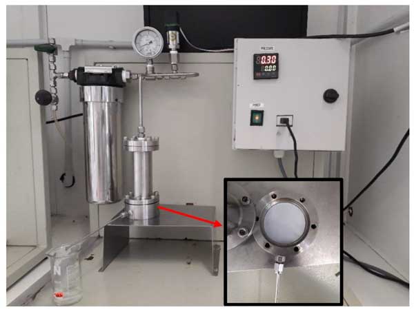 為了生產(chǎn)聚合物膜,聚偏二氟乙烯和1-甲基-2-吡咯烷酮分別用作聚合物和溶劑。圖1展示了用于制備涂料的過(guò)程。最初,聚合物PVDF使用加熱套在60至70℃的溫度范圍內(nèi)完全溶解在1-甲基-2-吡咯烷酮溶劑中(圖1a)。為了獲得更好的合成膜滲透通量,加熱套溫度應(yīng)始終保持在上述范圍內(nèi)。然后將涂料溶液注入干凈的瓶中,再將所需量的粉末活性炭添加到原液中以生成用于混合膜的原液。最后,將裝有涂料溶液的玻璃瓶放入超聲波儀中8小時(shí),以確認(rèn)添加劑的均勻混合,在制備的涂料中沒(méi)有產(chǎn)生任何氣泡。制膜過(guò)程使用甲半自動(dòng)膜澆鑄機(jī)施加到合成使用干-濕相處理的平片膜。