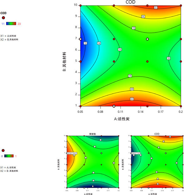 圖2:活性炭低濃度廢水處理過程的合適疊加轉(zhuǎn)換等值線圖。