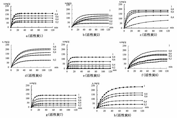 圖1:使用過的活性炭樣品在20℃時對來自VMA的正丁醇蒸氣的吸附動力學。