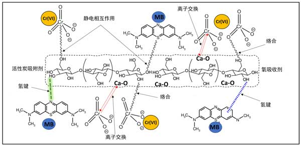 靜電相互作用:帶正電荷的亞甲藍(lán)與帶負(fù)電荷的活性炭表面相互作用,增強(qiáng)吸附作用。