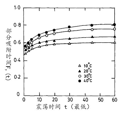 圖1.活性炭上的鋯離子在不同溫度下的振蕩時(shí)間(溶液濃度2 g / l,pH 1.9)。