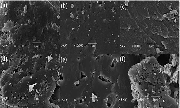從表面形態(tài)分析不同煤和活性炭的SEM圖像如圖2所示。它表明三種活性炭的表面相對(duì)光滑,沒有任何毛孔,除了偶爾的裂縫。在活化后,三個(gè)活性炭的外表面都顯示出不規(guī)則的孔。活性炭的表面相對(duì)粗糙并且表現(xiàn)出更多的孔。而具有低灰分和揮發(fā)性物質(zhì)含量的炭2顯示出相當(dāng)光滑的表面?赡苁窃跉饣^程中形成的金屬鉀可以擴(kuò)散到碳基質(zhì)的內(nèi)部結(jié)構(gòu)中,從而擴(kuò)大現(xiàn)有的孔隙并產(chǎn)生新的孔隙。