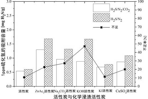 圖4:活性炭對混合氣體的吸附容量比較及其不足。