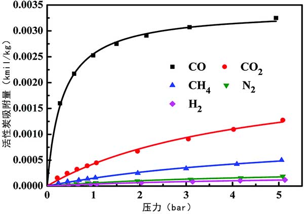 活性炭對CO,CO 2,CH 4,N 2和H 2的吸附等溫線