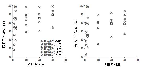 圖2:活性炭對Ca 2+離子和Mg 2+離子吸附效率。