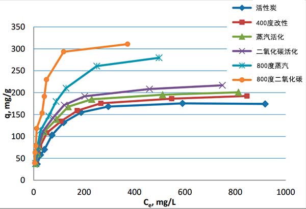 對(duì)用于水處理的五種市售活性炭進(jìn)行氯霉素吸附試驗(yàn)。這些包括粒狀活性炭,椰殼活性炭,果殼活性炭,粉狀活性炭與柱狀活性炭(原材料各不一樣)。