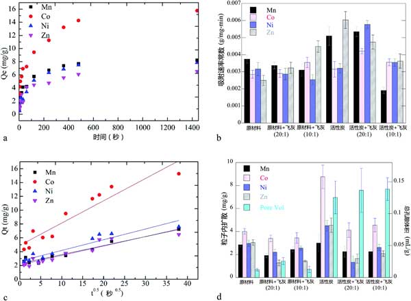 圖3:活性炭對重金屬的吸附動力學(xué)。