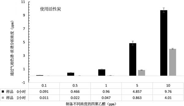 在活性炭去除四聚乙醛的作為聚乙醛增加的初始濃度降低中可以看出,對于0.1、0.5、1、5和10ppm,較低濃度的乙醛的去除率分別為88%,95%,95%,82%和59%。除去0.5ppm和1ppm時(shí),乙醛的去除率略低于0.1ppm。這是因?yàn)榈蜐舛鹊奈奖砻鞔嬖诖罅康奈轿稽c(diǎn),但只有少量的吸附物,當(dāng)超過一定比例的吸附劑和吸附質(zhì)時(shí),吸附減慢。因此,反應(yīng)較慢并且需要更多的吸附時(shí)間可以更有效地除去聚乙醛。