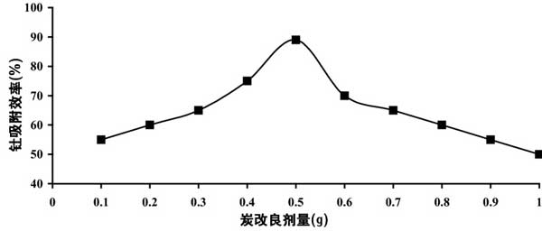 圖3:改良活性炭劑量對(duì)釷離子吸附效率的影響。