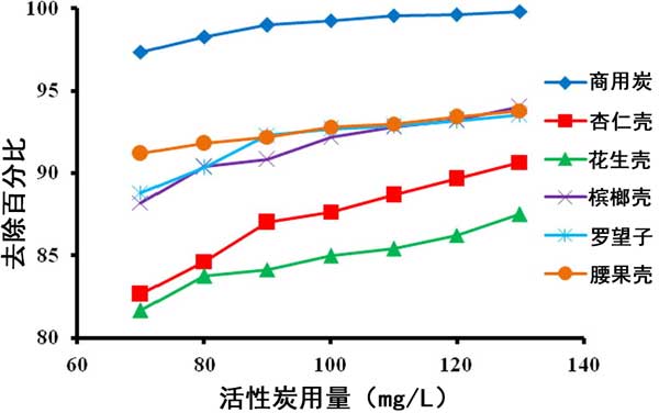 圖2:用量變化對(duì)各種活性炭的影響。