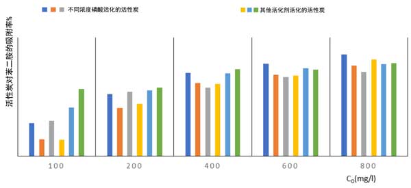 活性炭的制備在室溫下干燥之前,用蒸餾水洗滌,隨后進行粉碎研磨處理并使用電篩篩分,以獲得63μm的均勻粉末粒度。所得粉末在使用電爐煅燒前用磷酸進行化學預處理。根據特定比例添加磷酸來進行活化,并在110℃的爐中干燥48小時。隨后將干燥混合物引入坩堝陶瓷中,在450℃下在爐中煅燒,使其孔隙逐漸打開。用蒸餾水徹底清洗活性炭表面的活性殘留物,該步驟用來控制活性炭的pH。這樣得到的活性炭在110℃的烘箱中再次干燥48小時獲得成品。