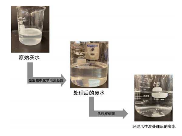 圖2:生水和活性炭處理過的灰水的照片。