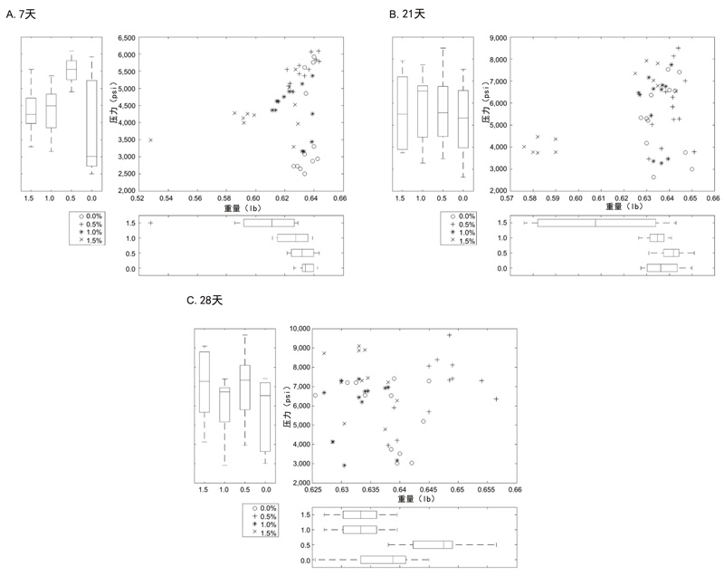 圖2:活性炭含量,抗壓強度和樣品重量之間的關系。