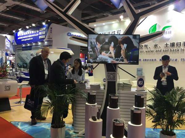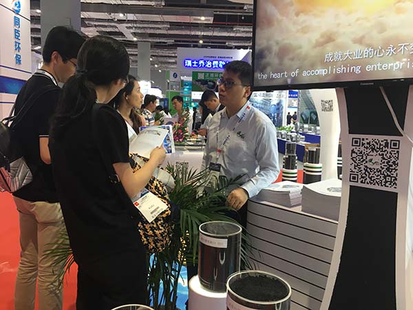 在為期三天的展會中,來自各個國家、各個行業(yè)的專家在韓研活性炭的展館交流探討活性炭相關(guān)技術(shù)問題。